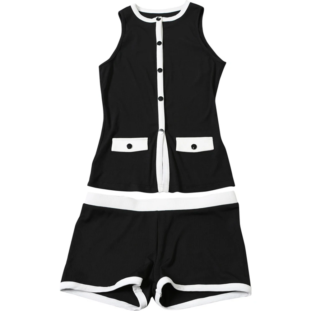 O CityChic Duo é o look ideal para quem busca estilo sem esforço: um conjunto feminino composto por top sem mangas com gola redonda e botões frontais, e um short de cintura elástica com caimento confortável. O contraste de cores traz um ar retrô-chique que vai do dia à noite com facilidade — perfeito para passeios casuais ou eventos com mais sofisticação.