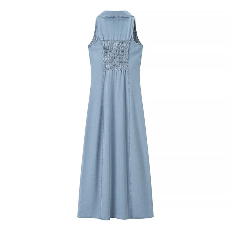 Com design clean e atemporal, o DenimGrace apresenta gola V com lapela, corte sem mangas e fechamento frontal por botões. A lavagem azul suave confere um ar vintage moderno, perfeito para produções elegantes e descontraídas. Feito com uma mistura de algodão e poliéster de alta qualidade, o tecido é leve, respirável e com leve elasticidade para se ajustar ao corpo com conforto.