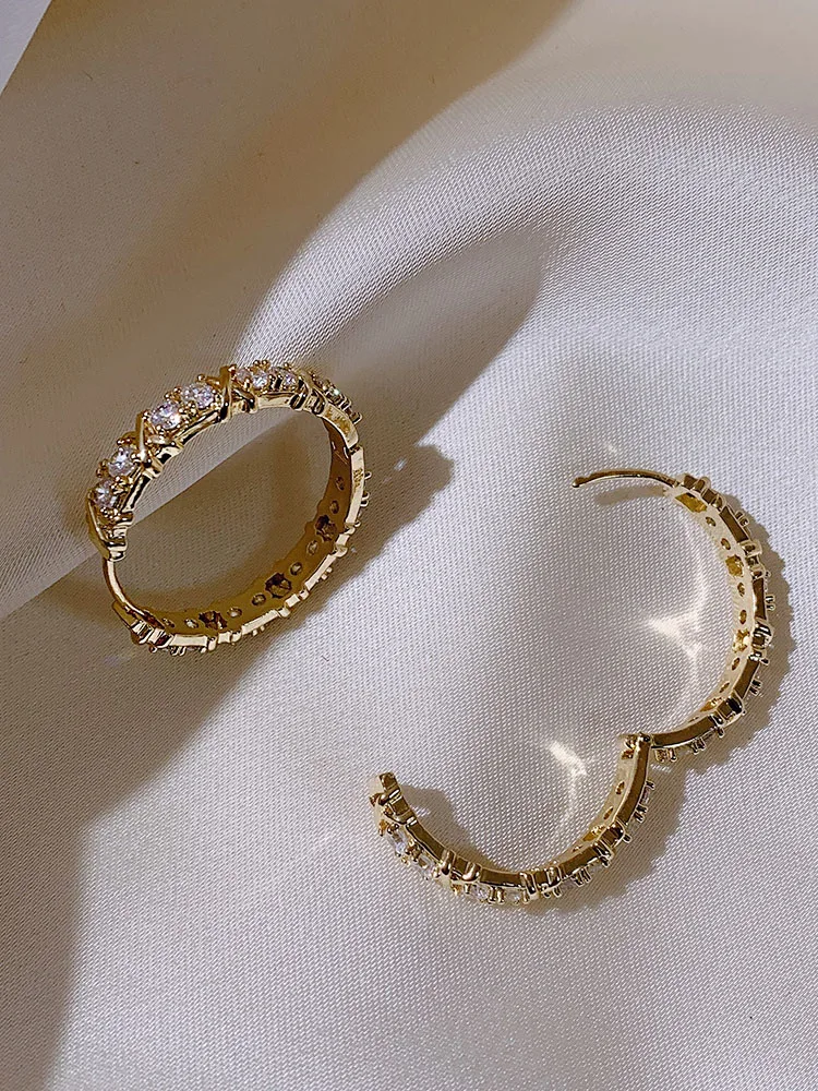 Transforme seu visual com um toque de luxo sombrio com os GothicLuxe Hoops. Inspirados no estilo neo gótico, esses brincos de argola unem o brilho intenso da zircônia à força da liga de cobre dourada, criando uma peça única que exala personalidade, elegância e atitude.