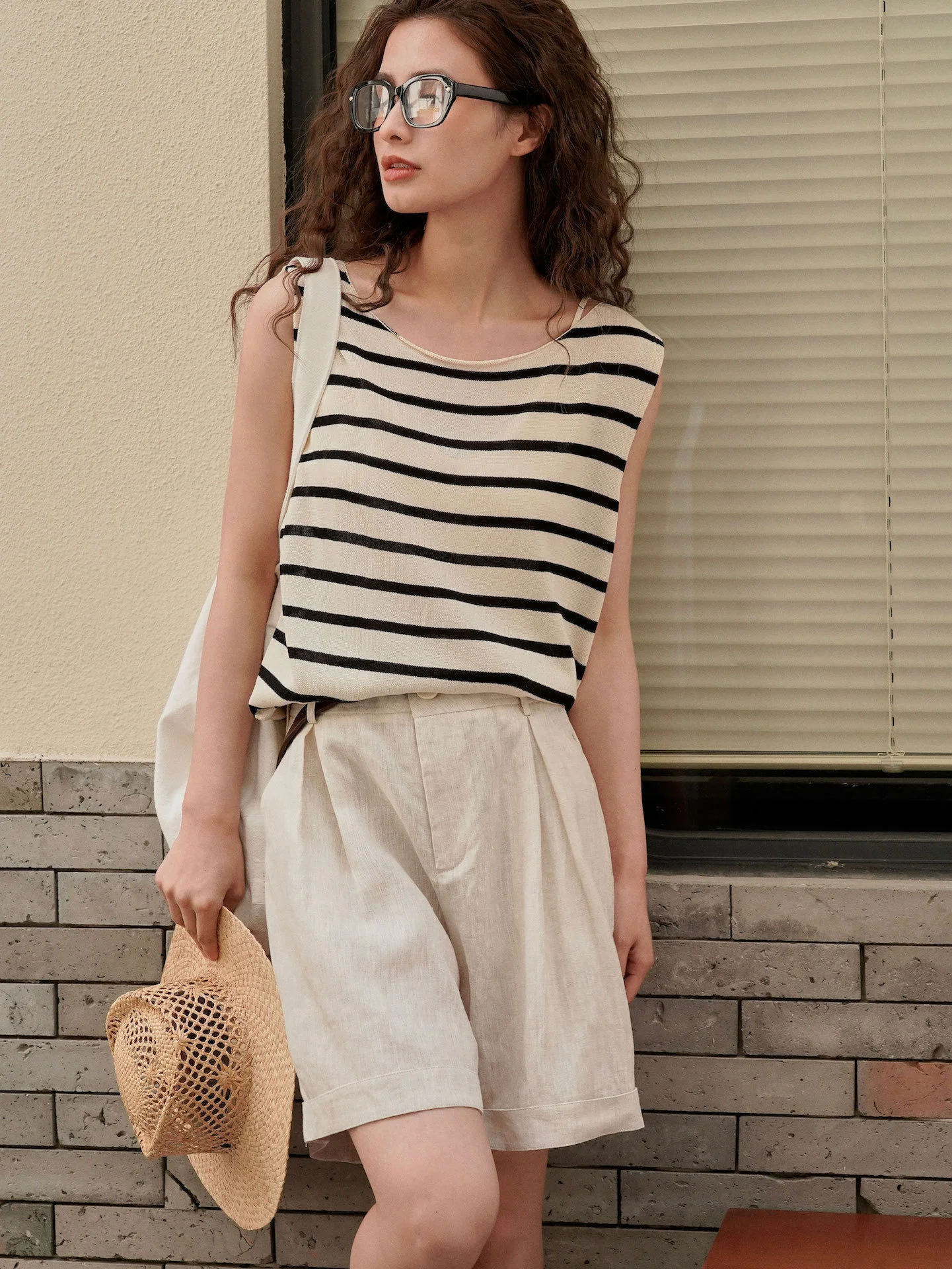 Sinta o frescor do verão com elegância e leveza. A Linen Breeze Shorts é a bermuda feminina perfeita para quem busca estilo sem abrir mão do conforto. Confeccionada em linho de alta qualidade, com caimento solto e cintura alta, ela proporciona mobilidade, frescor e um toque naturalmente sofisticado ao look.