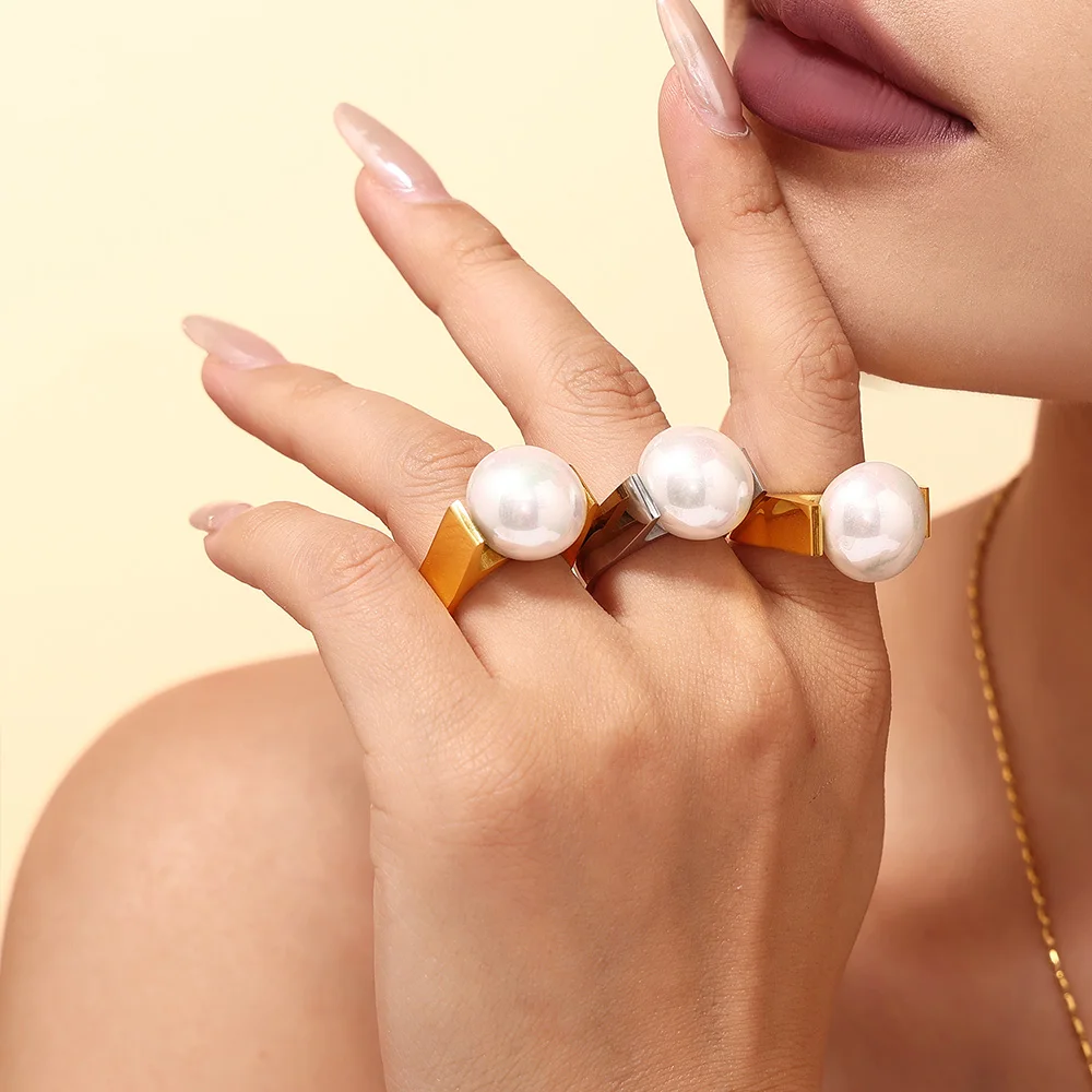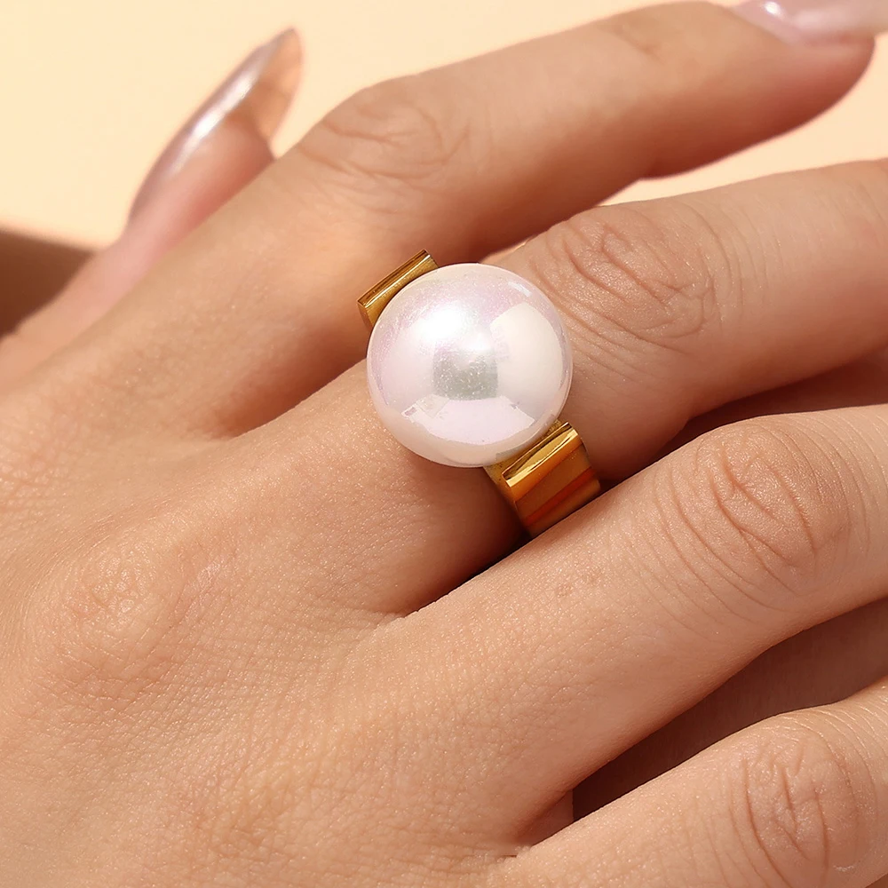 Design Impactante: O formato arredondado com pérola imitada atrai olhares e valoriza suas mãos com sofisticação.