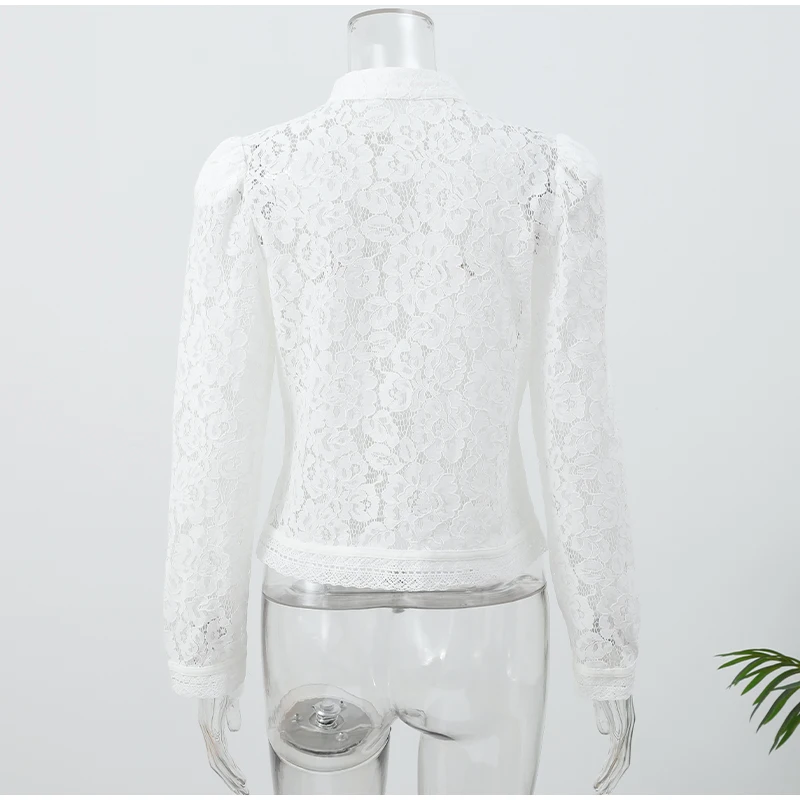 Uma peça que une o romantismo da renda com o charme retrô da moda oriental. A camisa Pérola Imperial é feita para mulheres que buscam um visual elegante, leve e moderno ao mesmo tempo. Com sua renda delicadamente trabalhada, gola alta estilo mandarim e corte ajustado na cintura, ela é perfeita para compor looks sofisticados com um toque de personalidade.