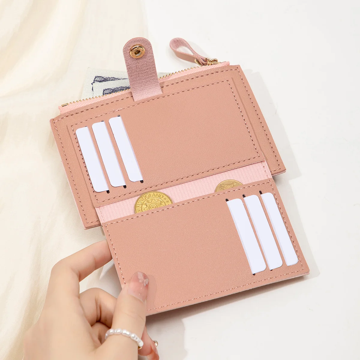 Com estrutura ultrafina e acabamento refinado, esta carteira feminina é ideal para quem busca leveza sem abrir mão da elegância. Fabricada em couro PU de alta qualidade com forro sintético, ela acomoda cartões, moedas e dinheiro com segurança e discrição.