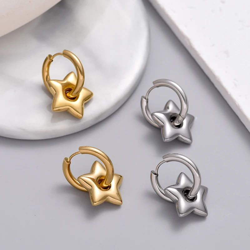 Tipo de brinco: Argola com pingente geométrico (estrela ou coração)