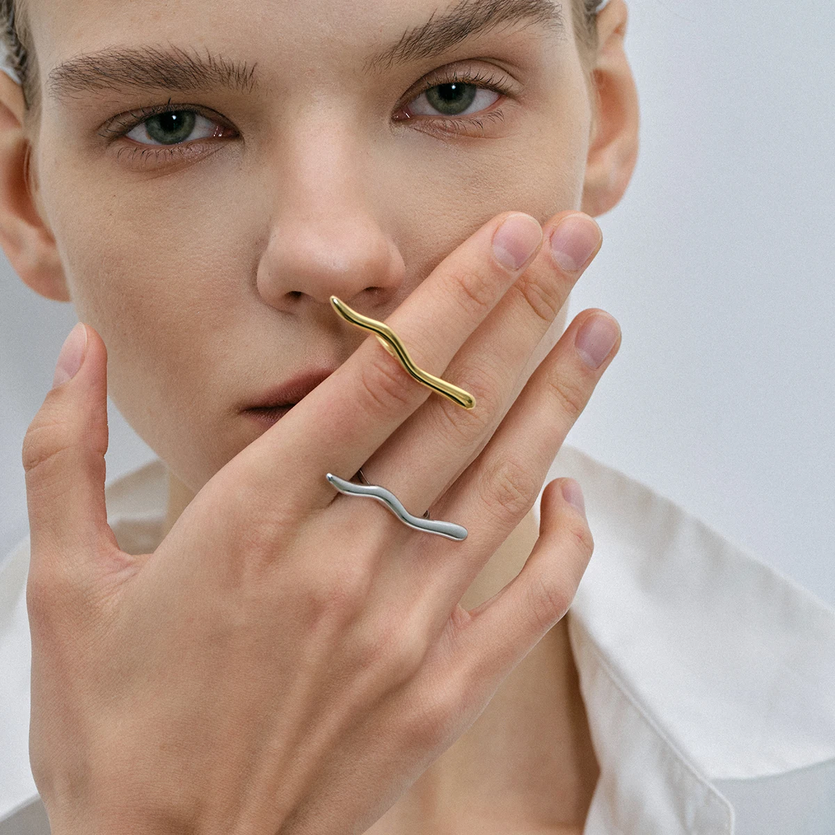 O WaveForm é um anel statement minimalista que combina linhas orgânicas e elegância atemporal. Com acabamento em aço inoxidável, este acessório à prova d’água é perfeito para quem busca um toque moderno, leve e sofisticado no dia a dia ou em ocasiões especiais.